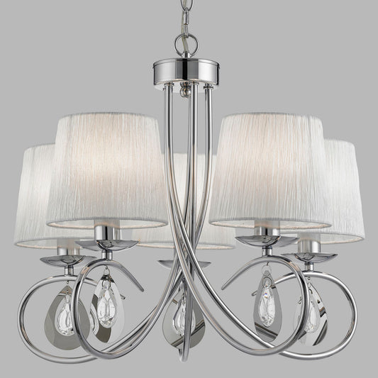 Angelique 5 Light Pendant - Chrome, Glass & White Shades