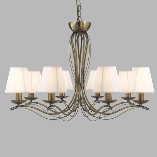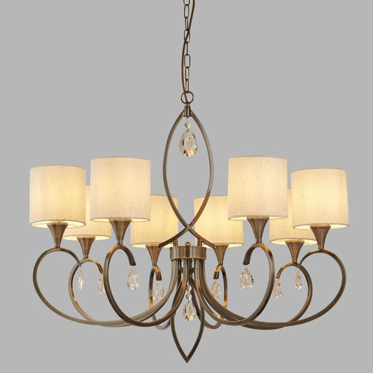 Alberto 8 Light Pendant- Antique Brass & Linen Shades