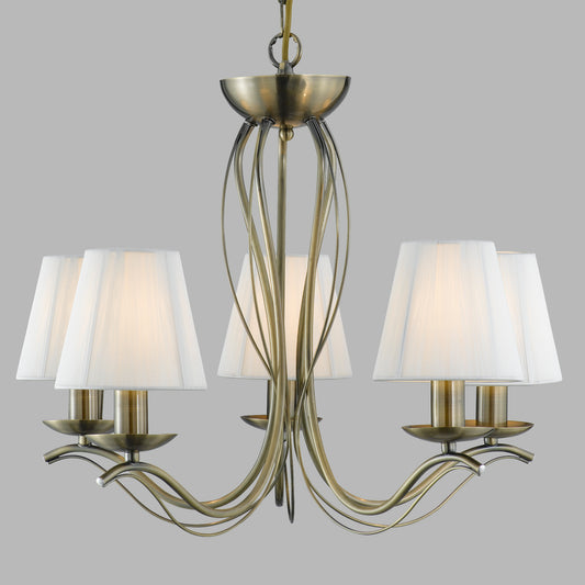 Andretti 5 Light Pendant - Antique Brass & Ivory Shades