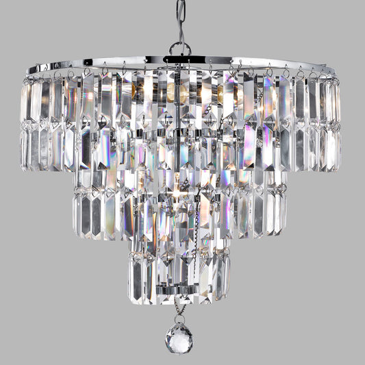 Angelique 5 Light Pendant - Chrome, Glass & White Shades