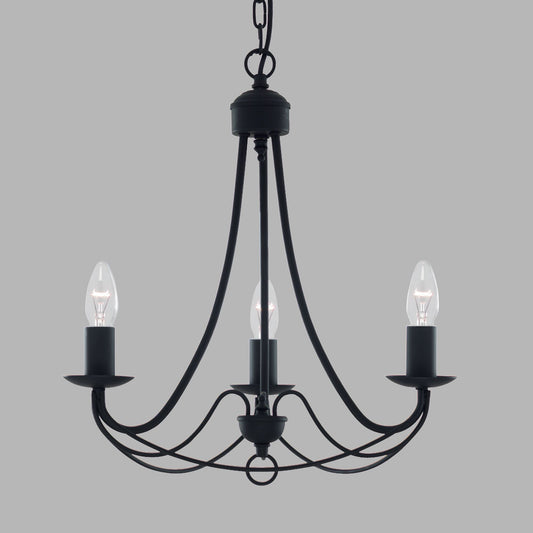 Maypole 3 Light Candle Pendant Lamp - Black Iron