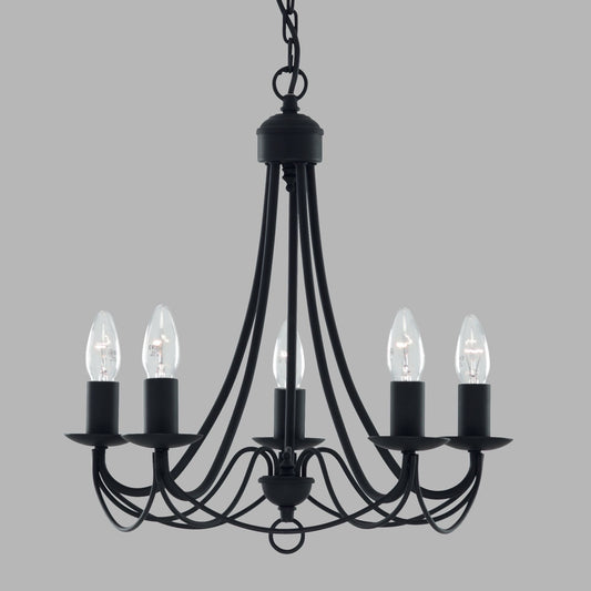Maypole 5 Light Candle Pendant Lamp - Black Iron