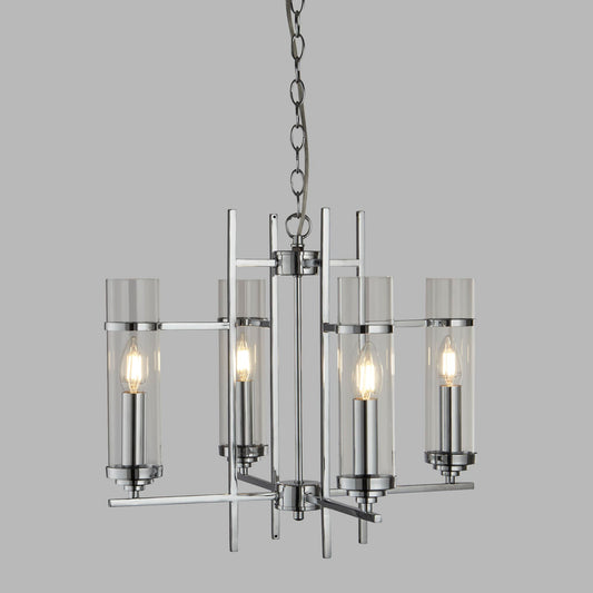 Milo 4 Light Modern Pendant Lamp- Chrome & Glass Shades