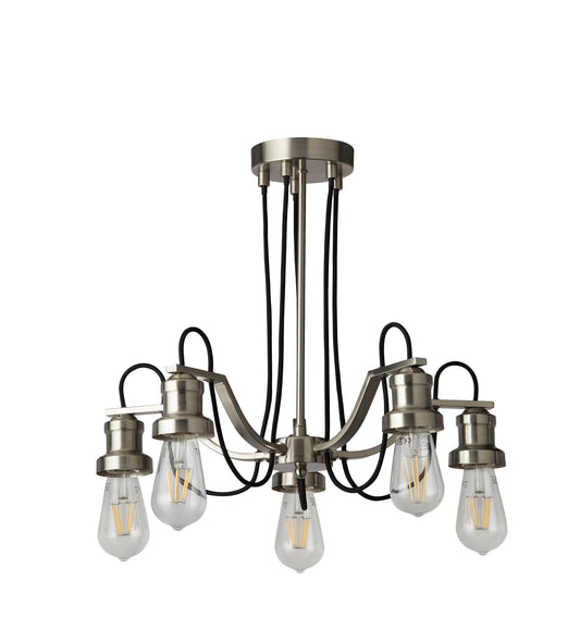 Olivia 5 Light Industrial Pendant Lamp - Satin Silver with Black Braided Cable