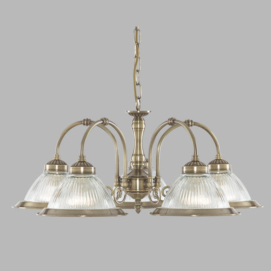 American Diner 5 Light Pendant - Antique Brass & Glass