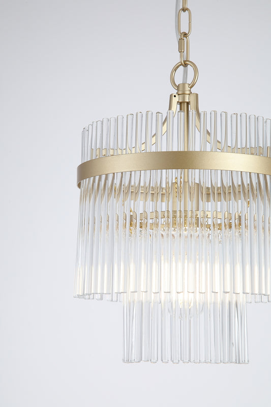 Heritage 5Lt Pendant, Gold Metal and Clear Glass Drops