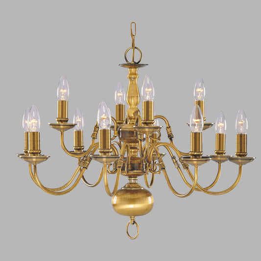 Flemish 12 Light Antique Brass Candle Lamp Pendant