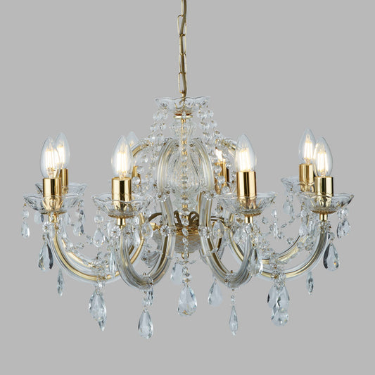 Marie Therese 8 Light Pendant - Polished Brass & Clear Crystal
