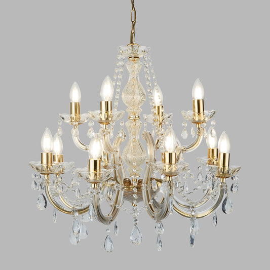 Marie Therese 12 Light Chandelier - Polished Brass & Crystal